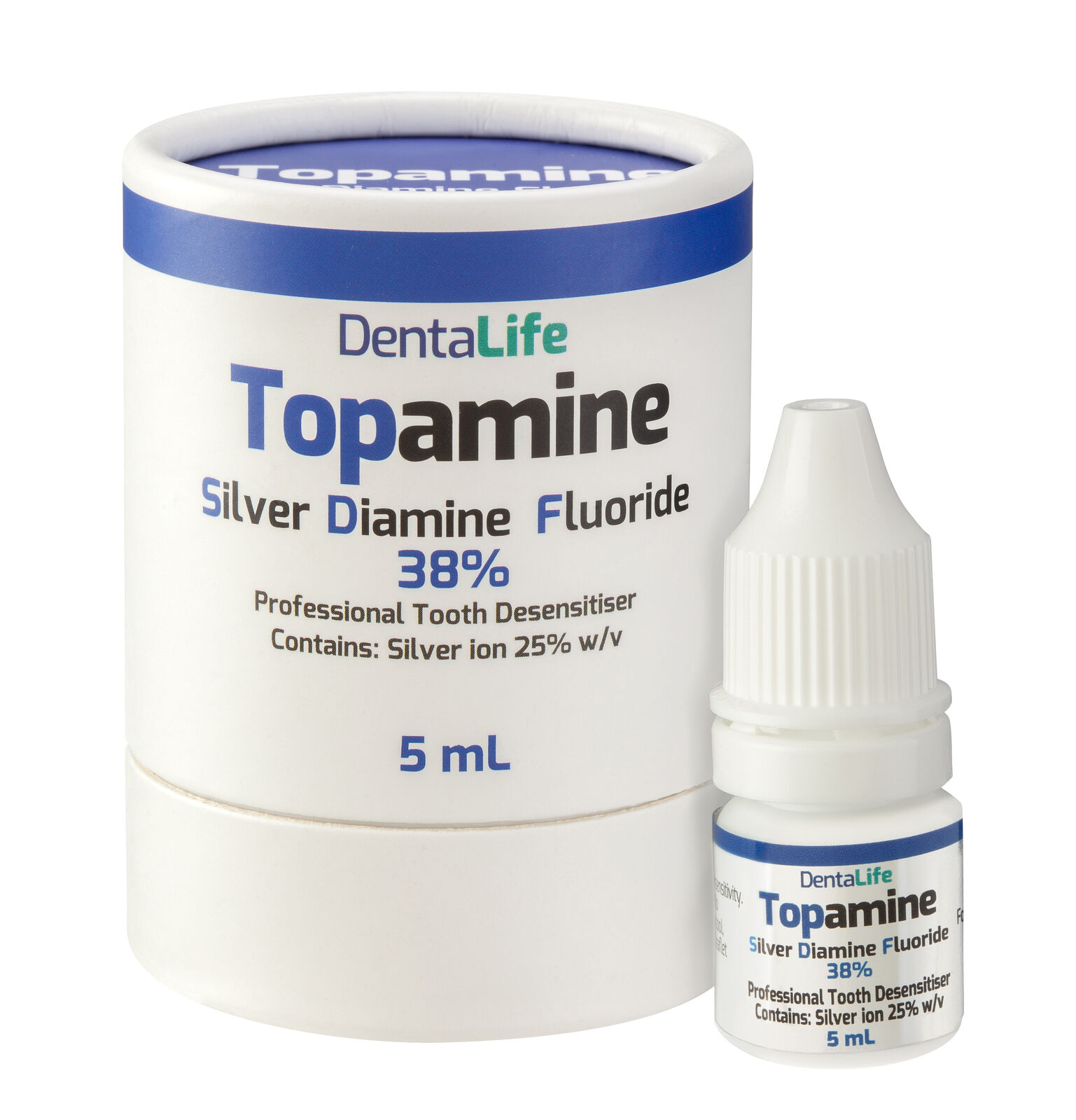 Topamine is a Silver Diamine Fluoride complex (SDF) used to treat dental hypersensitivity.