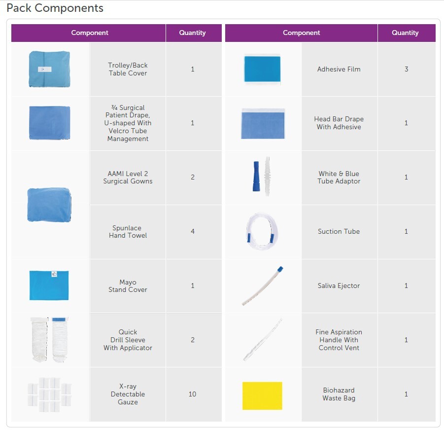 1 x Fluid-repellent drape (135x200cm) with adhesive O-shape cut (10cm dia) and loop